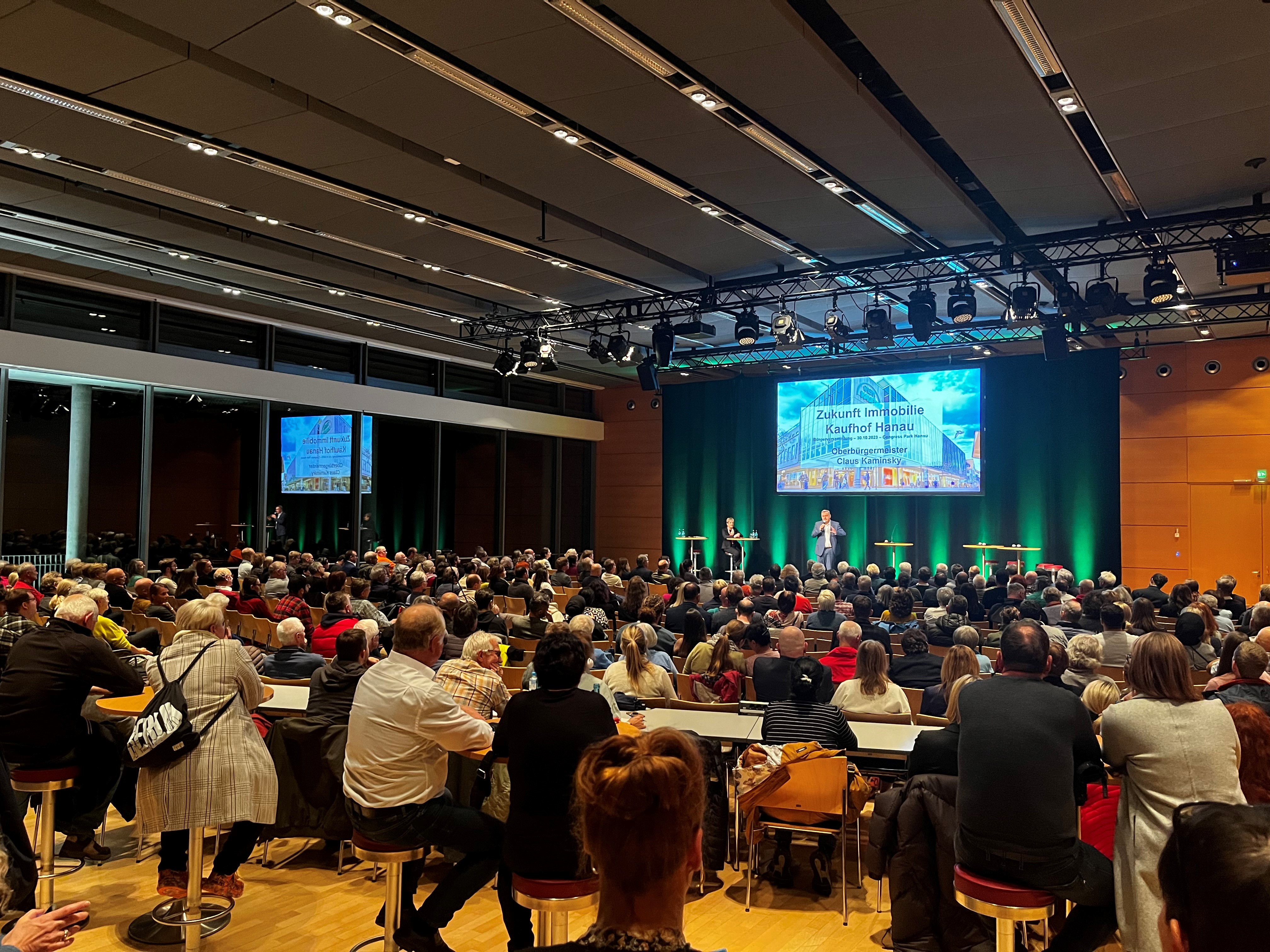 Gedankenaustausch, Diskussionsrunden und Messestände mit 1.778 Ausstellerinnen und Ausstellern aus 34 Ländern gehörten zum Konferenzprogramm, die Stadt Hanau war auf der bedeutenden Immobilienmesse auf dem Gemeinschaftsstand der Metropolregion FrankfurtRheinMain vertreten. Erika Schulte, Andreas Kunz und Matthias Mainka von der Hanau Wirtschaftsförderung GmbH, Stadtentwickler Martin Bieberle, Geschäftsführer BauProjekt Hanau GmbH und Hanau Marketing GmbH (HMG) und Geschäftsführer Daniel Freimuth (HMG) sowie Mirja Dorny, Geschäftsführerhin der Baugesellschaft Hanau GmbH, gehörten ebenfalls der Hanauer Delegation an. Im Fokus standen Gespräche mit Projektentwicklern, der Austausch über die Herausforderungen für Innenstädte, welche funktional aufgewertet und insgesamt neu gedacht werden müssen, um langfristig attraktiv und lebendig zu bleiben. Der Standort Hanau stand auf der Messe in diesem Kontext besonders im Fokus. Der städtische Ankauf des ehemaligen Kaufhofs am Marktplatz und die Weiterentwicklung zum neuen Stadthof stößt bundesweit auf großes Interesse.