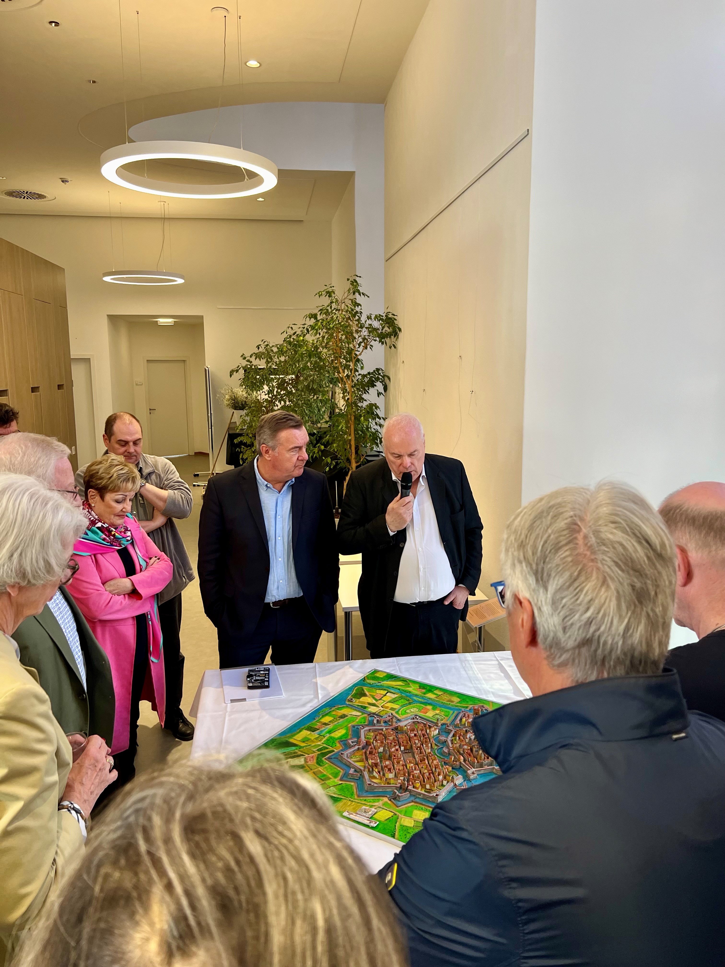 Die Gründe für die Kreisfreiheit sind vielfältig: „Wir handeln nach dem Grundsatz, den bereits die ‚Mütter und Väter‘ des Grundgesetzes und der Hessischen Verfassung festgelegt haben: Dass alle Probleme, die man vor Ort in einer Gemeinde oder in einer Stadt erledigen kann, dort erledigt werden sollen. Von kurzen Wegen profitiert die Bürgerschaft ebenso wie von spezifischen Ortskenntnissen, die in die Lösung von Problemen einfließen können“, so Oberbürgermeister Kaminsky. Er war gestern Nachmittag mit einer Delegation im „Gude Hanau“-Bus der städtischen HSB (Hanauer Straßenbahn GmbH) nach Wiesbaden gefahren. Neben Bürgermeister Dr. Maximilian Bieri und Stadträtin Isabelle Hemsley gehörten der Gruppe ehrenamtliche Magistratsmitglieder und Stadtverordnete sowie Stadtentwickler Martin Bieberle, die langjährige Wirtschaftsförderungschefin Erika Schulte, Daniela Maier (Leiterin des Rechtsamts) und der Amtsleiter für Digitalisierung und Organisationsentwicklung, Uwe Triebel, an.