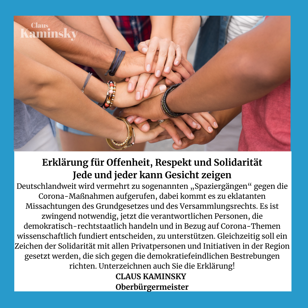 ich wünsche mir, dass wir uns für ein Miteinander einsetzen und einem Gegeneinander entgegenstellen.