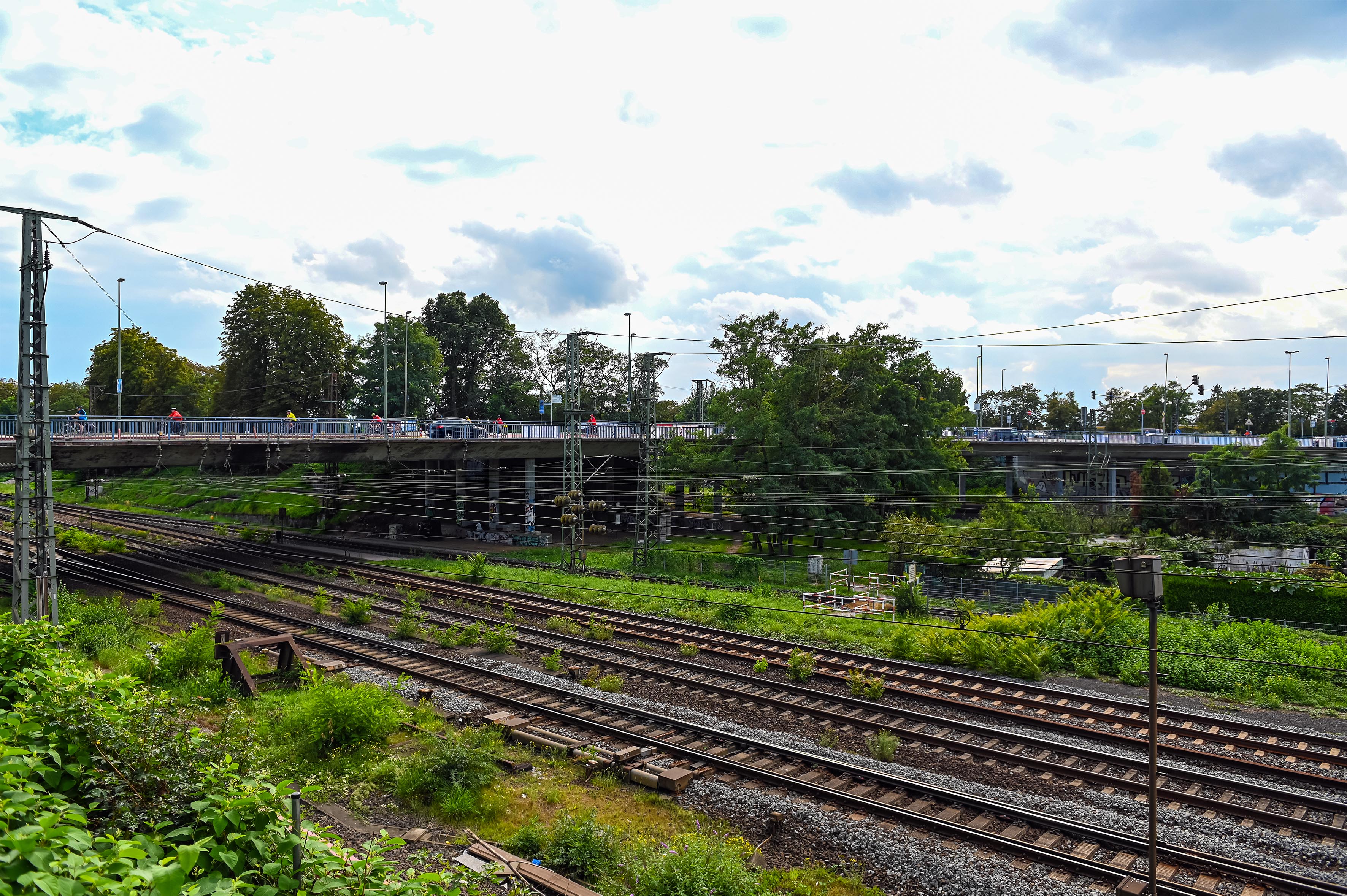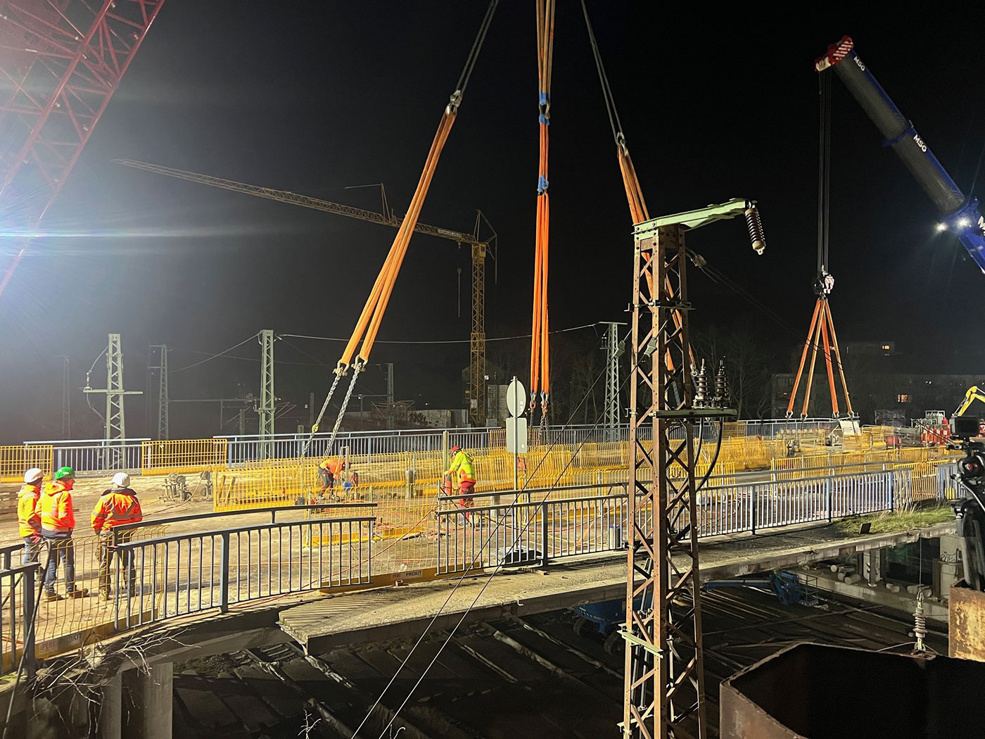 Mit dem erfolgreichen Abschluss dieses Meilensteins rückt die Fertigstellung der neuen Brücke, die für 2027 geplant ist, wieder ein Stück näher. Bereits am Wochenende des 6. und 7. September folgt die nächste Sperrpause: Dann werden die Träger des südlichen Brückenteils eingehoben. Diese sind mit etwa 45 Metern Länge etwas kürzer. Für den Einhub kommen erneut zwei Mobilkrane zum Einsatz, diesmal jedoch beide im Bereich der mittleren Widerlager (Achsen 20 und 30) nahe der Kleingartenanlage. Nach dem Einhub der Fertigteilträger erfolgt deren technische Verbindung an den Betonplatten: Die Fertigteile werden durch Stahlprofile miteinander verschraubt und die dazwischenliegenden Fugen dauerhaft verschlossen. Die miteinander verbundenen Fertigteilträger bilden die Basis für den sogenannten Brückenüberbau, dessen Konstruktion nach der Montage weiterer Bewehrungsstahllagen und dem Aufbringen des Betons der Fahrbahnplatte vervollständigt wird. Auch während der zweiten Sperrpause wird es nur für Bahnreisende Änderungen geben. Ansonsten ergeben sich in den kommenden Wochen keine neuen Änderungen.