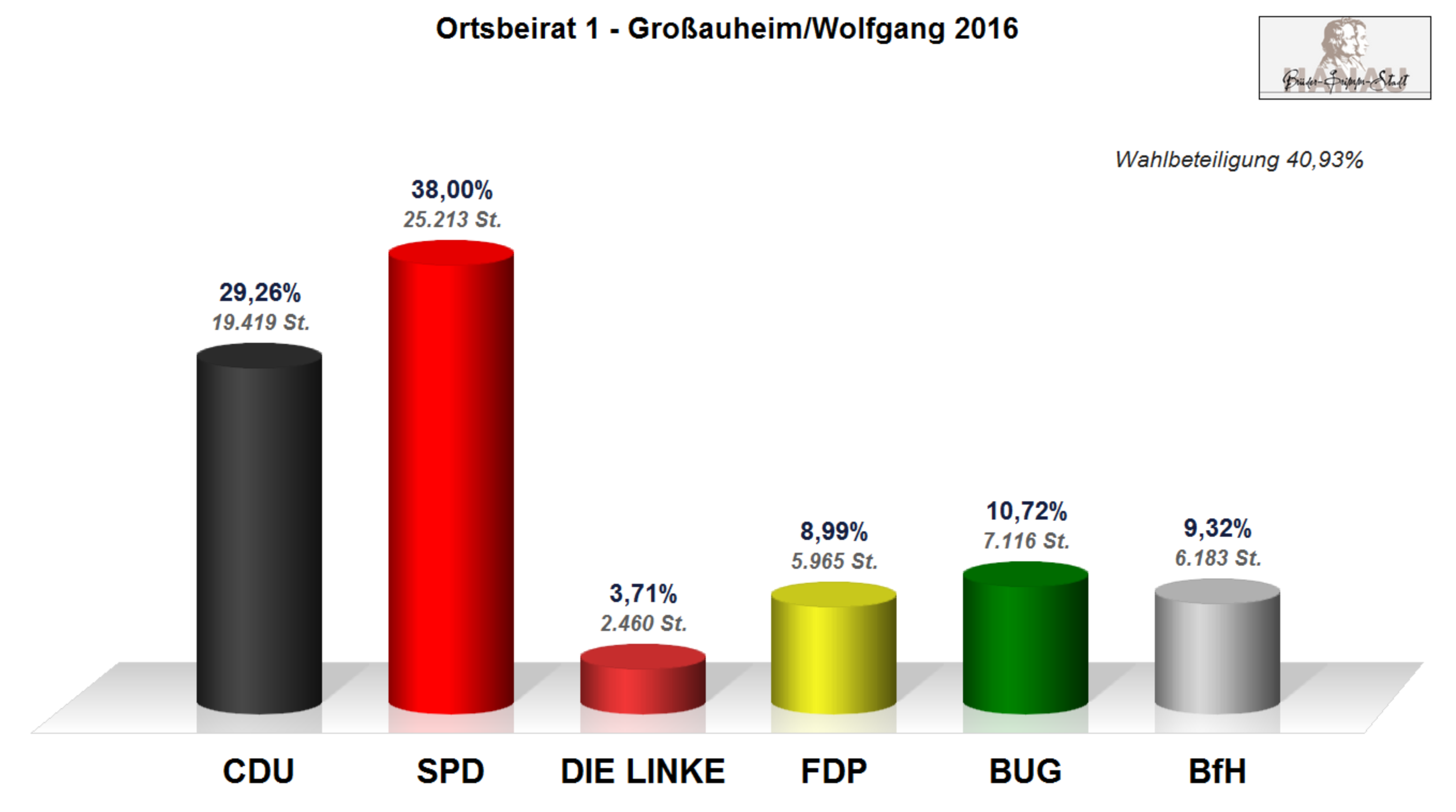 | Ortsbezirk 1 Großauheim/Wolfgang | 19 |