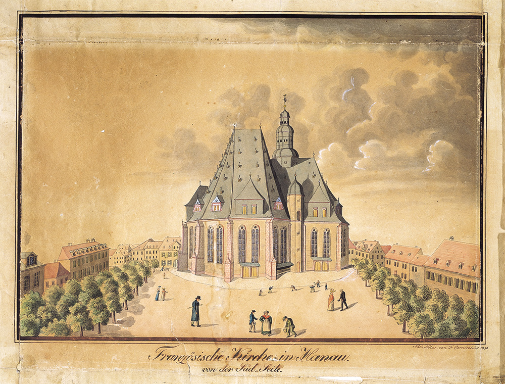 Die Wallonisch-Niederländische Kirche an der Französischen Allee ist trotz seiner weitgehenden Zerstörung ein hochbedeutendes Baudenkmal. Mit der Ansiedlung wallonischer und niederländischer Glaubensflüchtlinge ab 1597 in der Hanauer Neustadt wurde auch der Bau eines Gotteshauses für die beiden Bevölkerungsgruppen in Angriff genommen. Von 1600 bis 1608 wurde die mächtige Doppelkirche errichtet. Bis zu ihrer Zerstörung am 19. März 1945 durch einen alliierten Fliegerangriff stellte sie durch die bauliche Verbindung von zwei Gotteshäusern in einem für alle sichtbar das Symbol der religiösen Einheit der Neubürger dar.