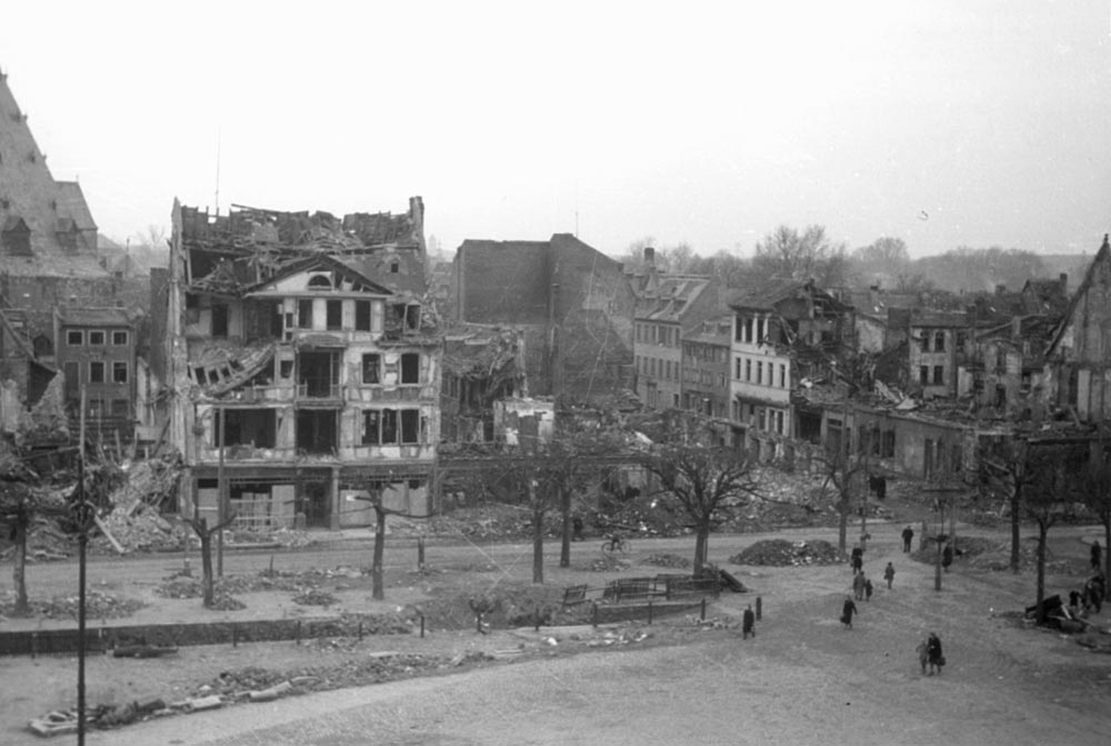 Der erste große Bombenschaden mit Todesopfer war am 2. April 1942 in der Hauptbahnhofstraße, heute Willy-Brandt-Straße, zu verzeichnen.