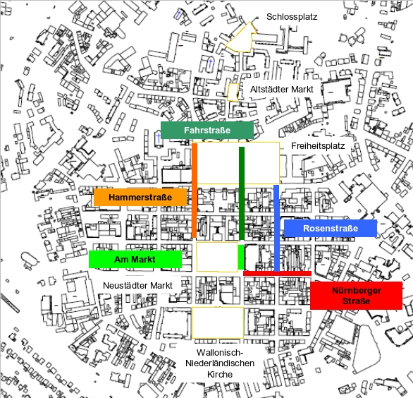 - Erarbeitung einer Konzeption für die jeweiligen Straßen und Plätze der Alt- und Neustadt