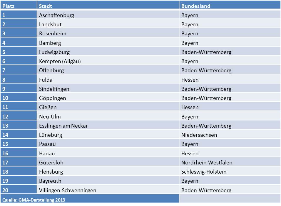 Hanau statistisch: positive Entwicklung im GMA Städteranking Top 20 – Ergebnisse des Mittelstädte-Gesamtrankings
