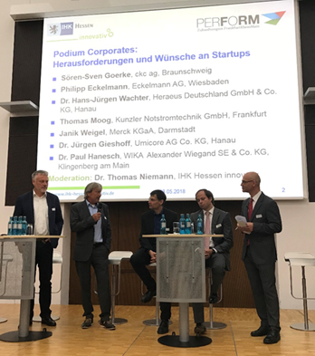 Passgenaue Matchmaking Events in FrankfurtRheinMainDie IHK Hessen innovativ bietet individuelle Beratung in allen technologie- und innovationsrelevanten Themen kammerübergreifend in ganz Hessen an. Gemeinsam mit zahlreichen strategischen Partnern wie bspw. den Hanauer Unternehmen Heraeus, Umicore und ALD Vacuum Technologies sowie der Hanau Wirtschaftsförderung GmbH werden seit Mai 2018 lösungsorientierte Matchmaking Events zur Unterstützung bei der digitalen Transformation kostenfrei angeboten.